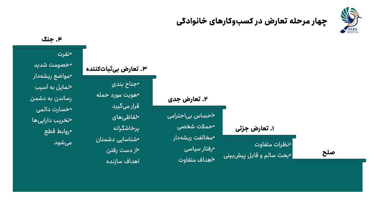 زمانی رخ میدهد که اختلافات طولانی شده و به جنبههای شخصی یا سازمانی کشیده شود؛ مثلاً رقابت میان پیمانکاران، یا اختلاف سهامداران درباره نحوه سرمایهگذاری. در این سطح، فضای سازمان پر از سرزنش و بیاعتمادی میشود و اگر مدیریت نشود، افراد شروع به جلب حمایت گروههای دیگر میکنند.